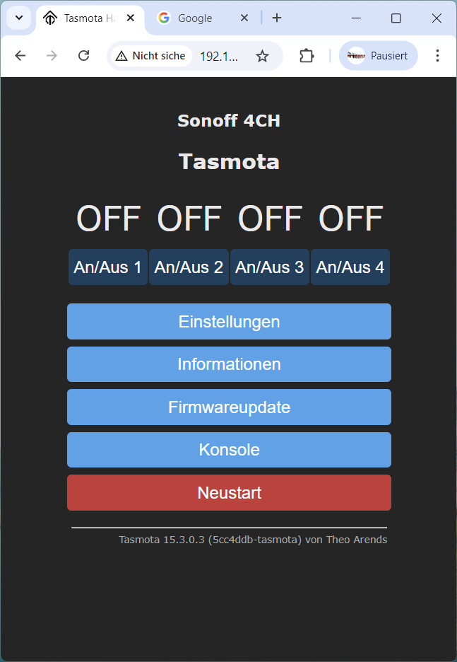 Stuerungssoftware wird das Betriebssystem Tasmota mit integriertem
